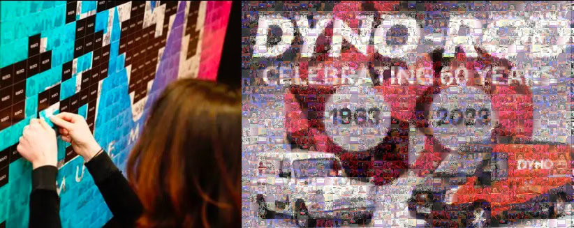 Using photos from another experience or ones that guests upload themselves to create an image, everyone has a part in the resulting mosaic giving it a personal, truly interactive touch.