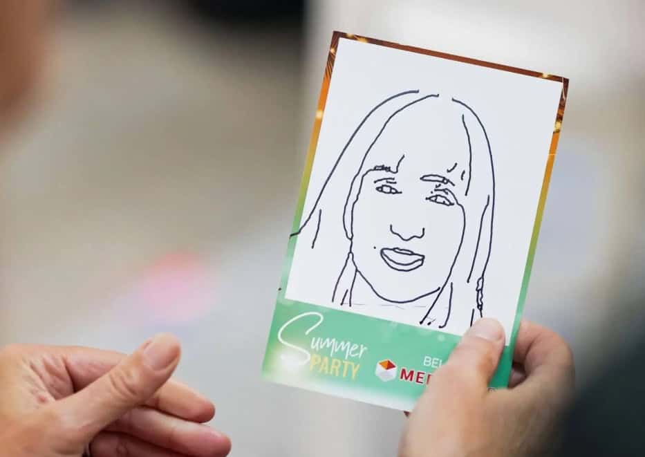 The robot arm creates a branded sketch-style portrait of your guests in less than a minute for them to take home.