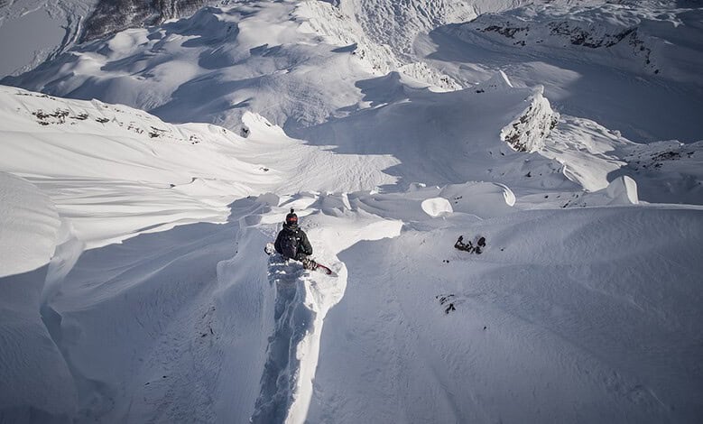 If you’re patient enough, Alaska has a special snow quality that allows you to drop into extremely steep runs, with guaranteed heavy snowfall and humidity to form the nearly vertical spines and bluebird days to ride.